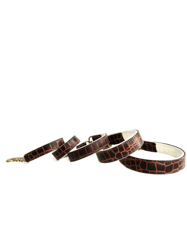 Eckers bruna snakeprint läderhalsband i halvstryp.